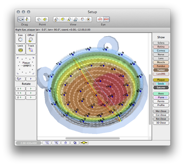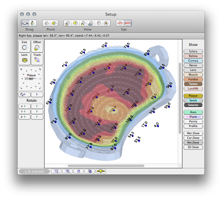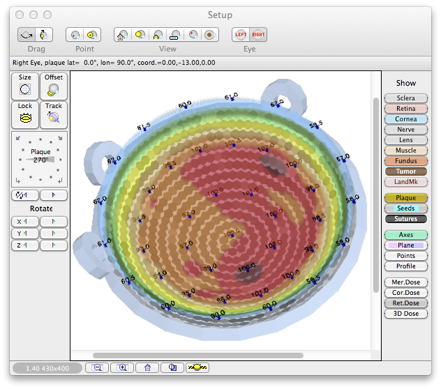Plaque Simulator's patch source (PDF) model of the BEBIG Ru-106 plaques requires a number of ad hoc calibration factors derived from measurements. All of the required measurements are provided in the data sheets that come with your plaque. To use your BEBIG Ru-106 plaque with Plaque Simulator you will need to: