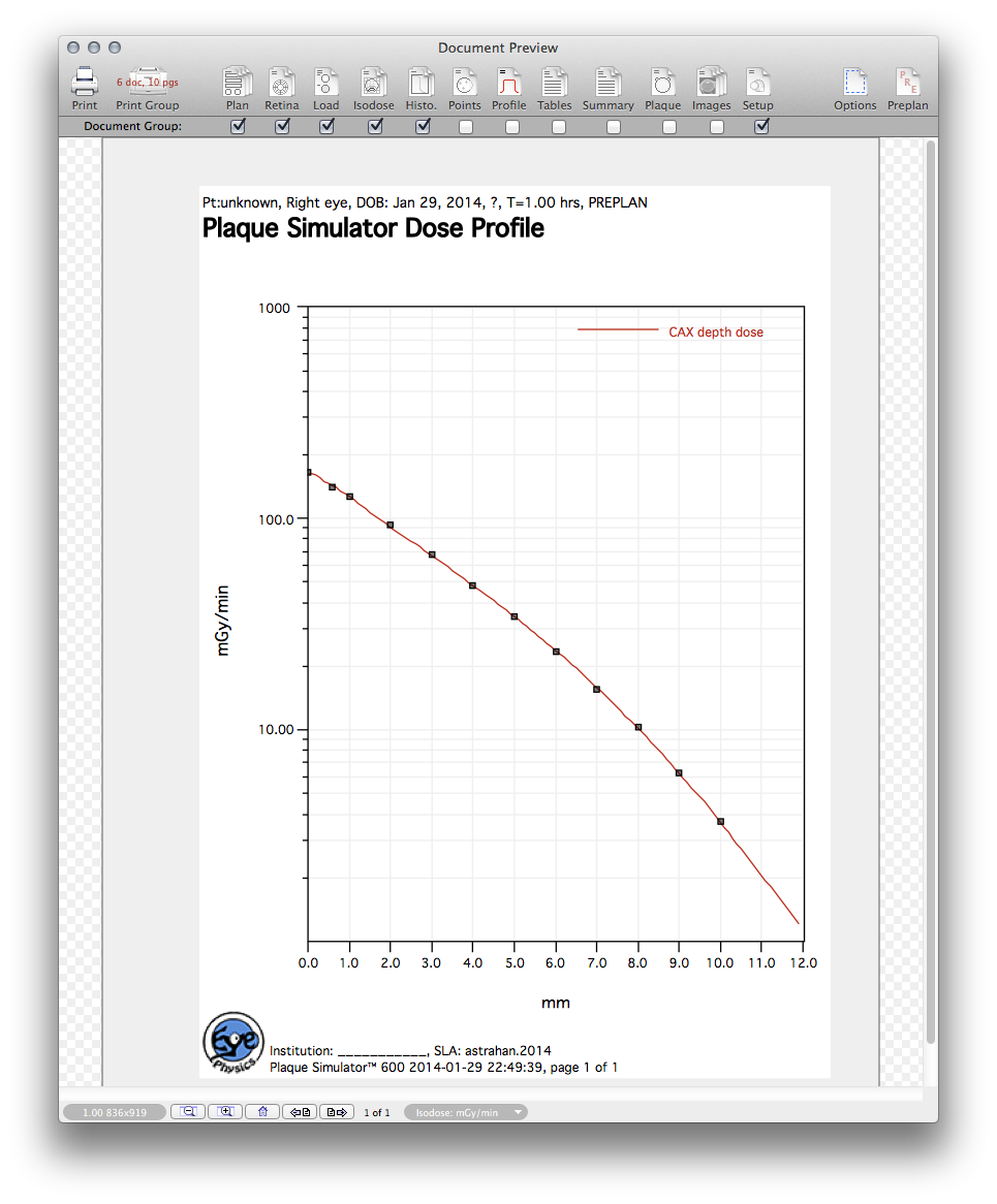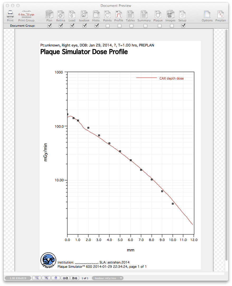 By inspection, adjust the Farfield power and Farfield threshold sliders until the dose profile curve passes through the farfield points (range 7 to 10 mm).