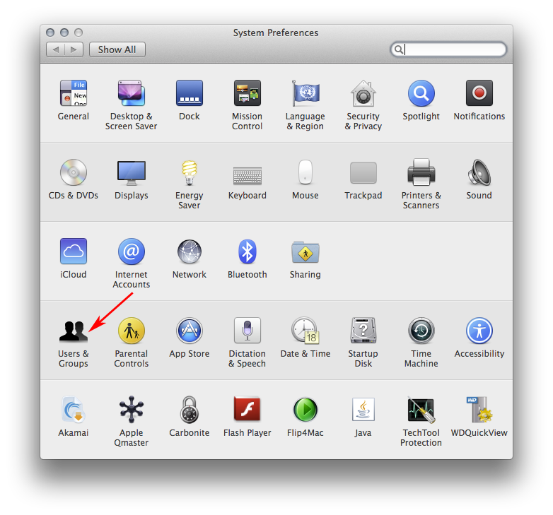 To create additional OSX users in addition to the default administrator, select System Preferences... from the Apple menu on the left of the menu bar along the top of the main screen. In the System Preferences... window: