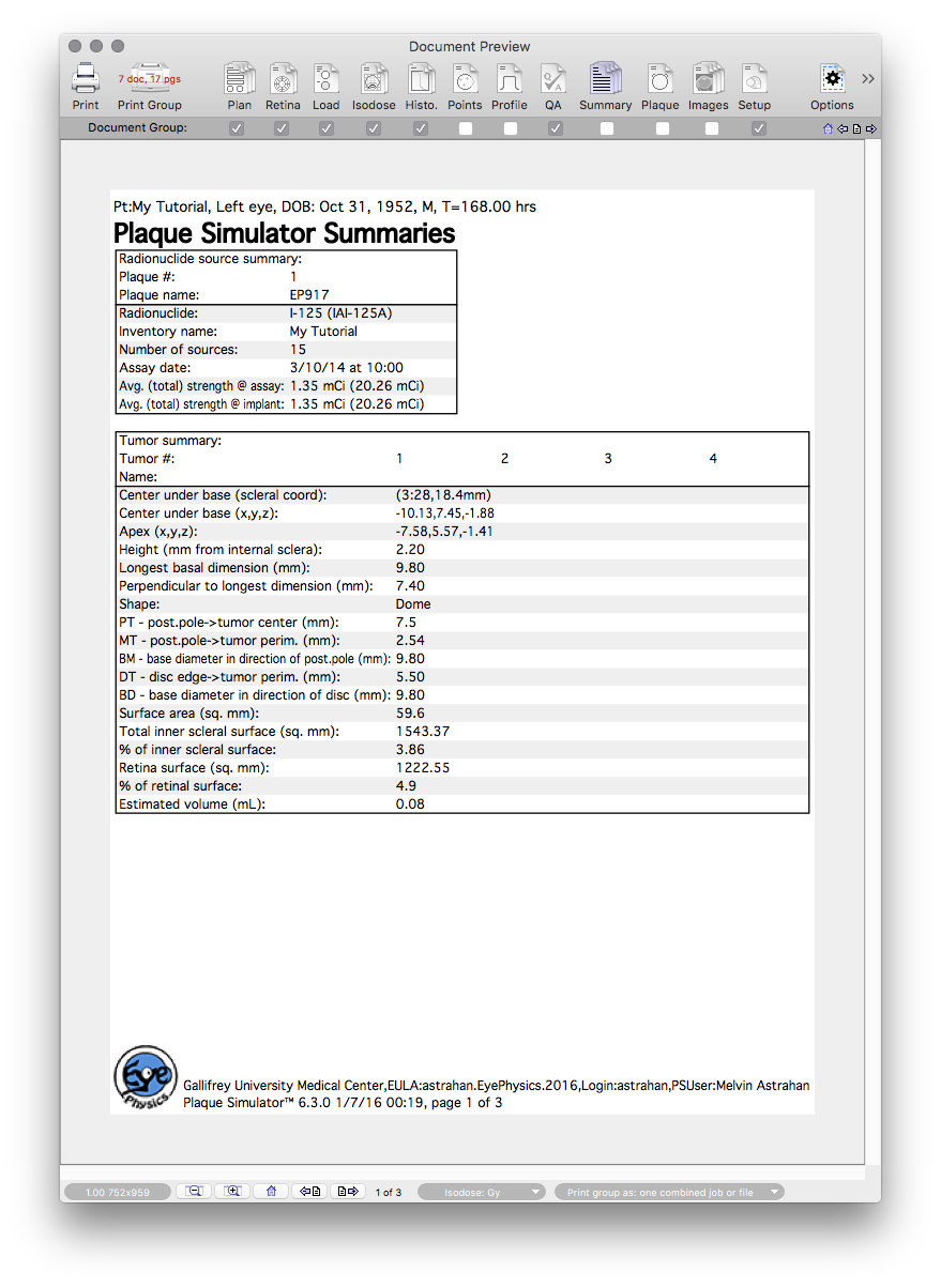 The Setup document prints a copy of the contents of the 3D Setup window. Initialization parameters are found in the Document Settings Misc pane.